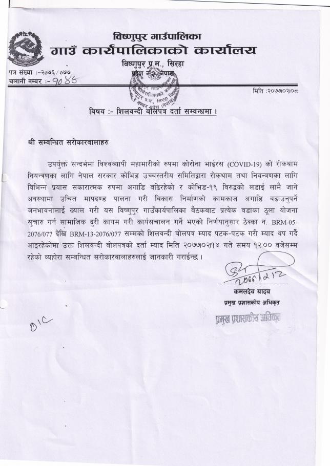 शिलबन्दी बोलपत्र दर्ता सम्बन्धि सुचना ।।