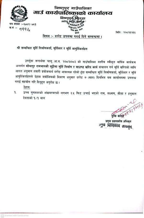 दररेट उपलब्ध गराइदिने सम्बन्धमा, श्री सम्बन्धित मुर्ति निर्माणकर्ता, मुर्तिकार र मुर्ति आपूर्तिकर्ताहरु ।।।।