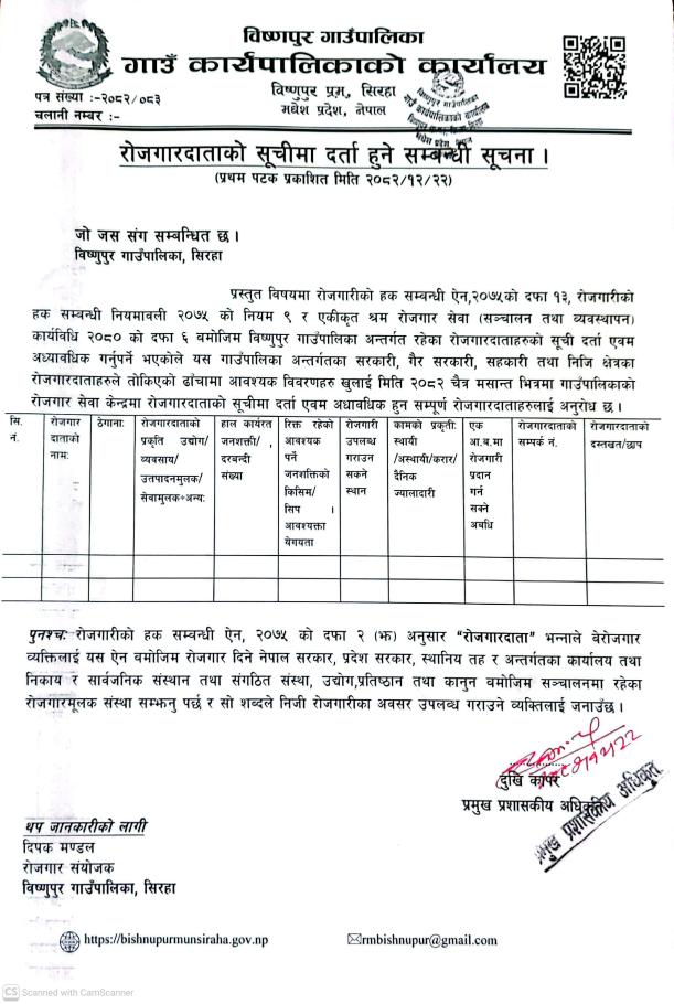 रोजगारदाताको सुचिमा दर्ता हुने सम्बन्धि सूचना ।।।